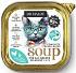 Dr Malou Soup to karmy powstałe z myślą o naturalnych potrzebach żywieniowych kotów domowych. Posiłek jest gotowy do spożycia po zalaniu wodą, kiedy odzyskuje swoją naturalną strukturę zapewniając kotu świeże i apetyczne danie. Dzięki możliwości regulowania ilości dodanej wody istnieje możliwość dopasowania idealnej konsystencji dla Twojego pupila - od mokrej karmy po lekką zupkę.